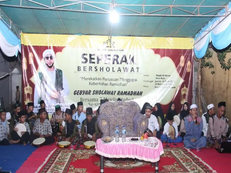 Bangka, infopertama.com – Dalam meneruskan estafet dakwah baginda Nabi Muhammad Saw, maka 7 Majlis Hadroh Se-Kecamatan Simpang Rimba ikut serta dalam menyukseskan acara SEPERAK BERSHALAWAT pada Jumat malam, 14 April 2023 di masjid Al-Hijrah desa Rajik, Kec. Simpang Rimba, Kab. Bangka Selatan, Prov. Bangka Belitung.