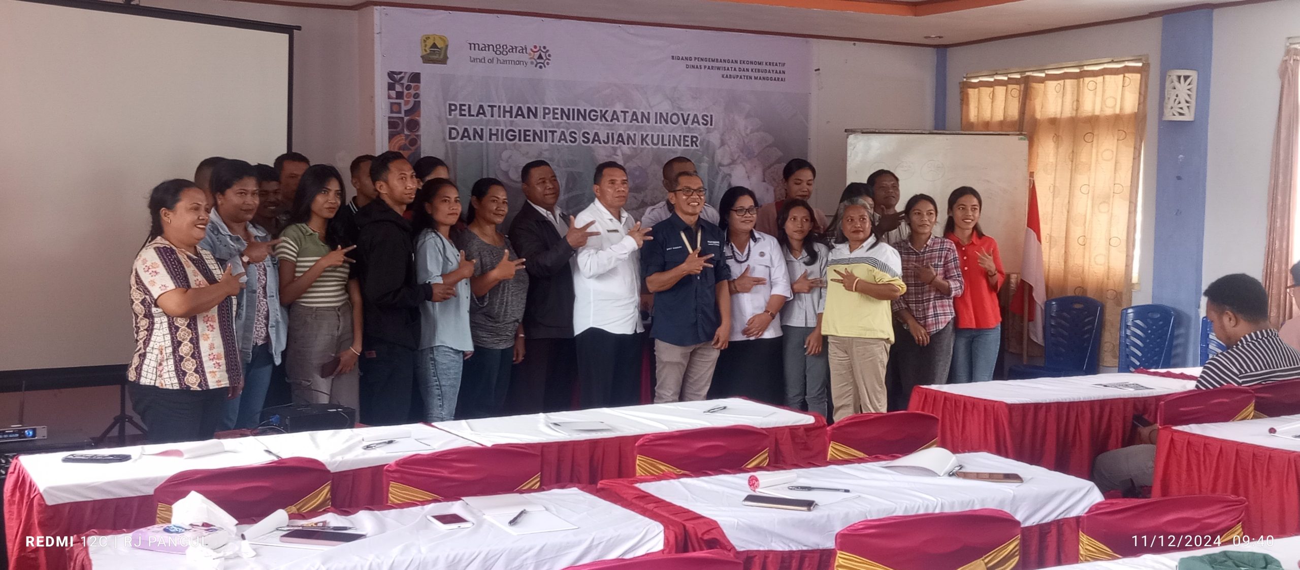 Kegiatan Pelatihan Peningkatan Inovasi dan Higienitas Sajian Kuliner terhadap 40 peserta itu dilangsungkan selama 4 hari yang dimulai sejak Rabu, 11 Desember 2024 di Aula Hotel Ranaka – Ruteng.