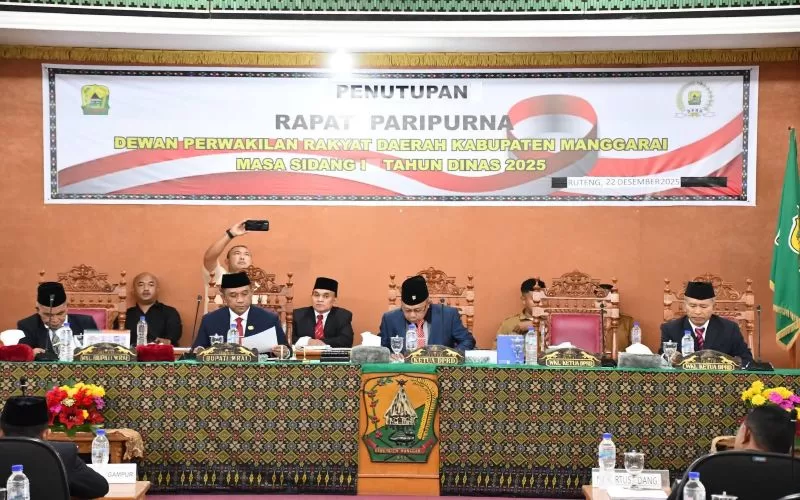 Ruteng, infopertama.com – Pemerintah Kabupaten Manggarai bersama Dewan Perwakilan Rakyat Daerah (DPRD) Kabupaten Manggarai secara resmi menutup Masa Sidang Tahun 2025 dalam Rapat Paripurna yang berlangsung di Ruang Sidang Utama DPRD Kabupaten Manggarai, Senin (22/12/2025).