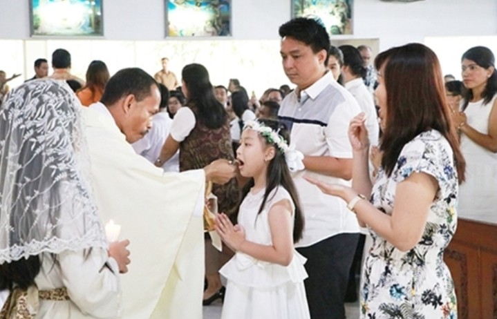 Dan saat komuni, terdengar lagi seruan, “Tubuh Kristus.” Dan yakin dijawab, “Amin!”