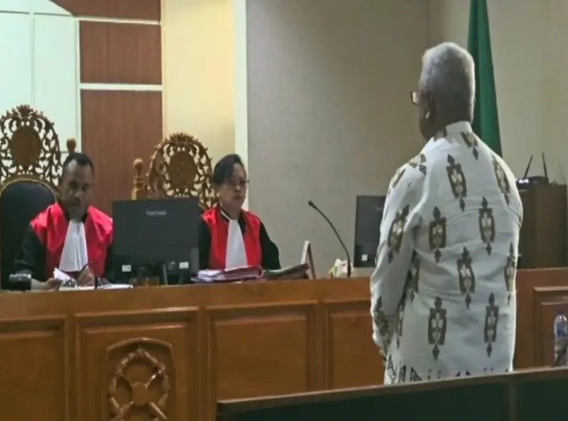 Jayapura, infopertama.com – Sidang Pembacaan Putusan Sela (interim meascure) perkara dugaan korupsi pengadaan Pesawat dan Helikopter Pemda Mimika yang menjerat Plt Bupati Mimika Johanes Rettob (JR) dan Direktur PT. Asian One Air Silvi Herawaty di Pengadilan Negeri Klas 1A Jayapura digelar Kamis (27/4/2023).