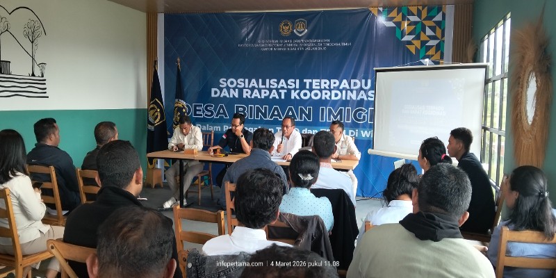 Ruteng, infopertama.com – Direktorat Jendral Imigrasi Indonesia, kantor Cabang Labuan Bajo, kabupaten Manggarai Barat melakukan sosialisasi terpadu dan rapat koordinasi dengan Desa Mitra Imigrasi di Ruang Rapat Sky Resort, Pitak – Langke Rembong, Rabu, 4 Maret 2026.