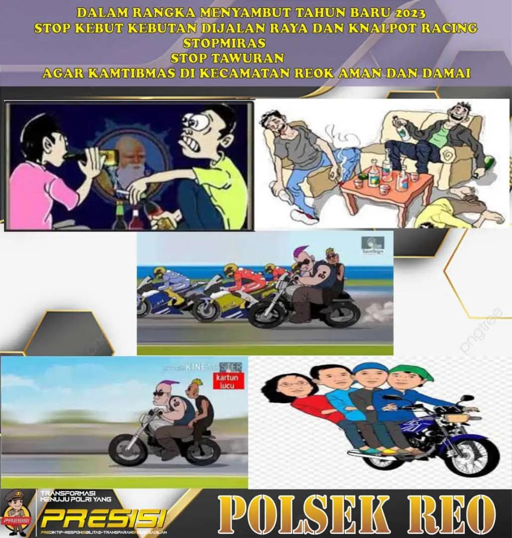 Sejumlah hal jadi atensi Polsek Reo, dituangkan dalam himbauan tersebut. Di antaranya minuman keras atau Miras, Kenalpot Racing, Main Petasan Ugal-ugalan di jalan, termasuk Ngebut-ngebutan.