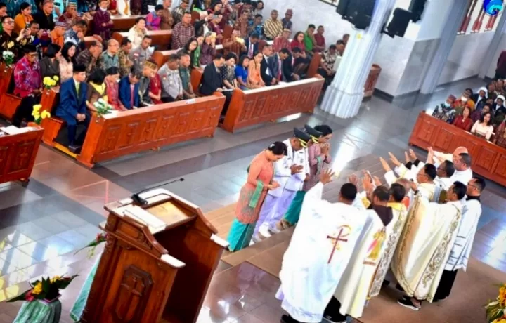 Bertempat di Gereja Katedral Ruteng, Selasa 4 Maret 2025, Vikaris Jenderal (Vikjen) Keuskupan Ruteng Pater Sebastian Hobahana, SVD memimpin perayaan Misa syukur pelantikan Bupati dan Wakil Bupati Manggarai terpilih periode 2025-2030.