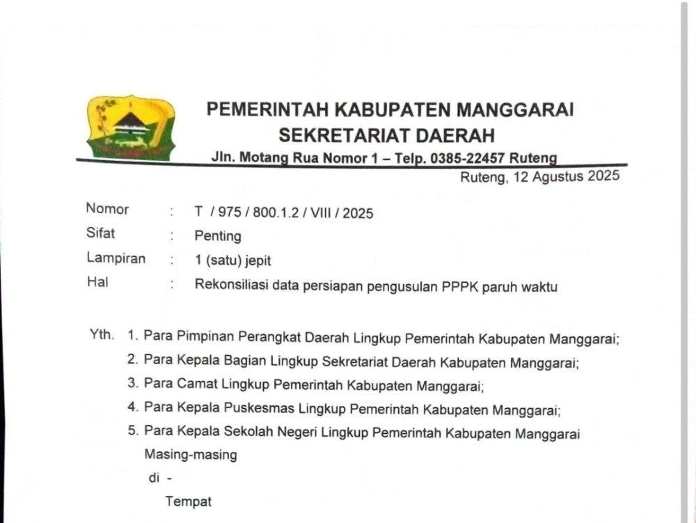 Langkah cepat dan sistematis ini menegaskan komitmen Pemkab Manggarai untuk menjawab tantangan administrasi yang selama ini menjadi hambatan bagi tenaga honorer. Proses rekonsiliasi yang ketat dan menyeluruh menjadi pondasi bagi pengusulan PPPK yang transparan, akuntabel, dan berkeadilan.