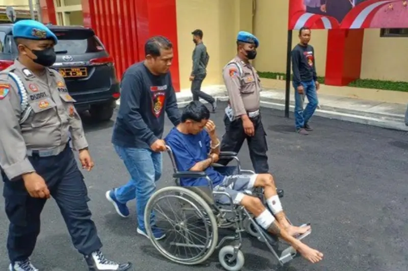 Saat hendak tangkap, tersangka melakukan perlawanan kepada petugas kepolisian. Hingga akhirnya, polisi memberi tindakan dengan menembak kaki pelaku.