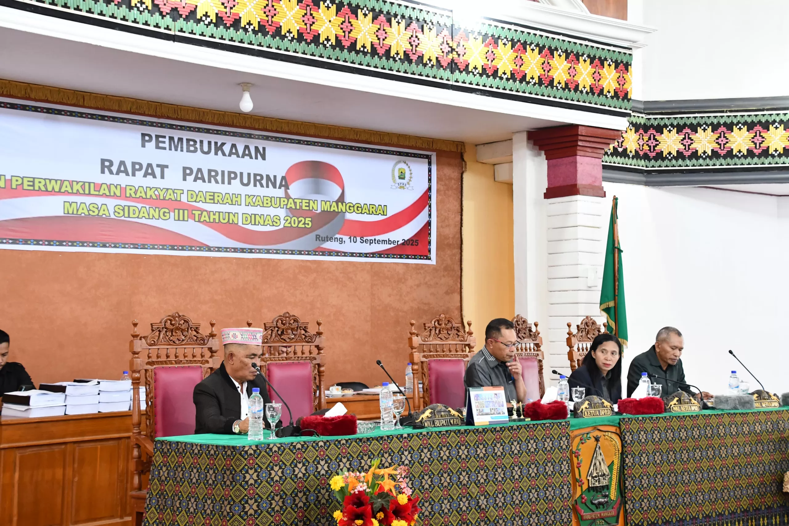 Sidang dibuka secara resmi oleh Ketua DPRD Kabupaten Manggarai, Paulus Peos, didampingi Wakil Ketua I, Agnes Menot, dan Wakil Ketua II, Thomas Tahir, serta dihadiri oleh Wakil Bupati Manggarai, Fabianus Abu, S.Pd., jajaran anggota DPRD serta para kepala perangkat daerah.