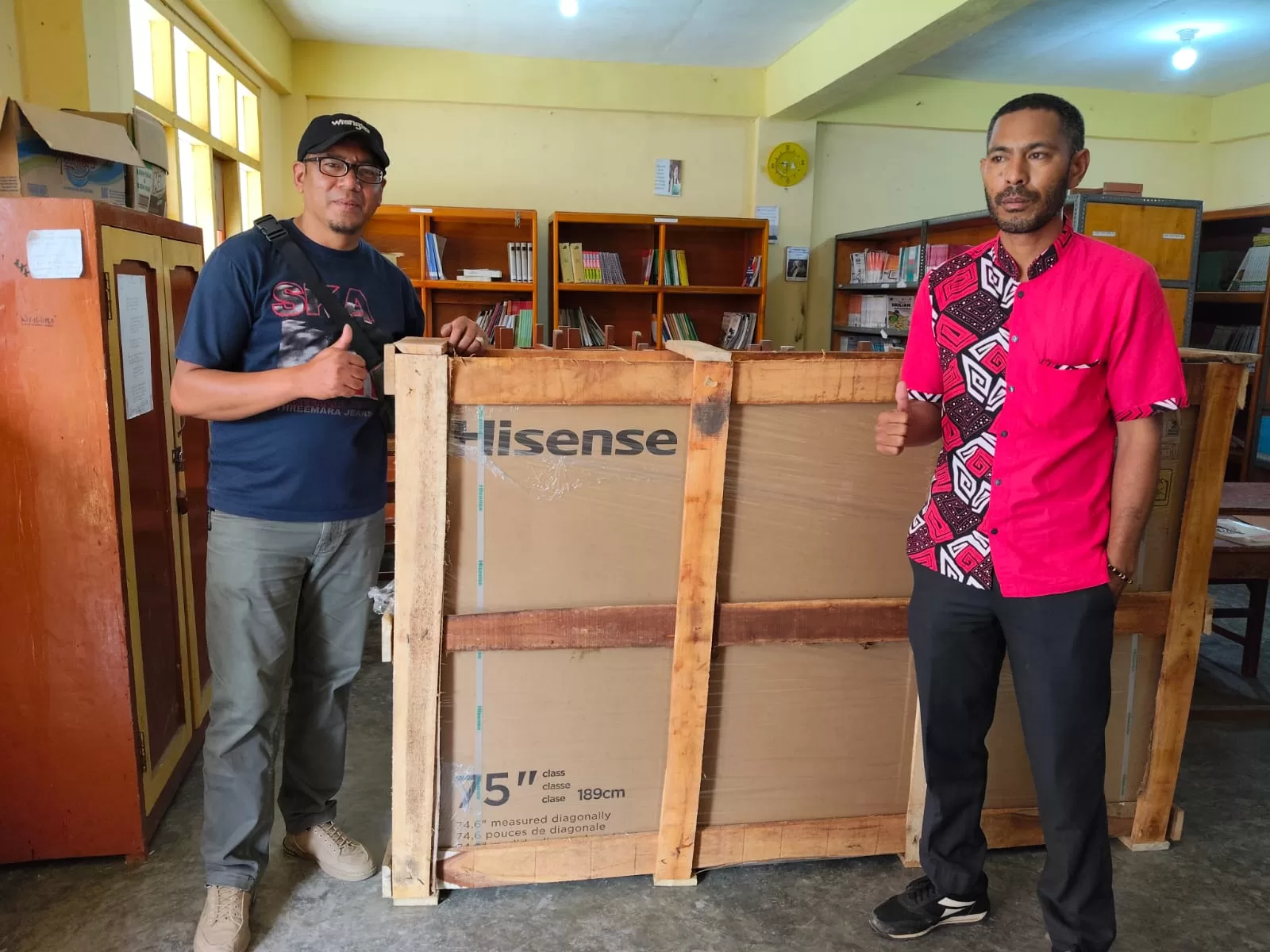 Ketahui, bantuan SmartTV berukuran 75 inc mulai didistribusikan ke sekolah-sekolah penerima manfaat di semua kabupaten kota di NTT.