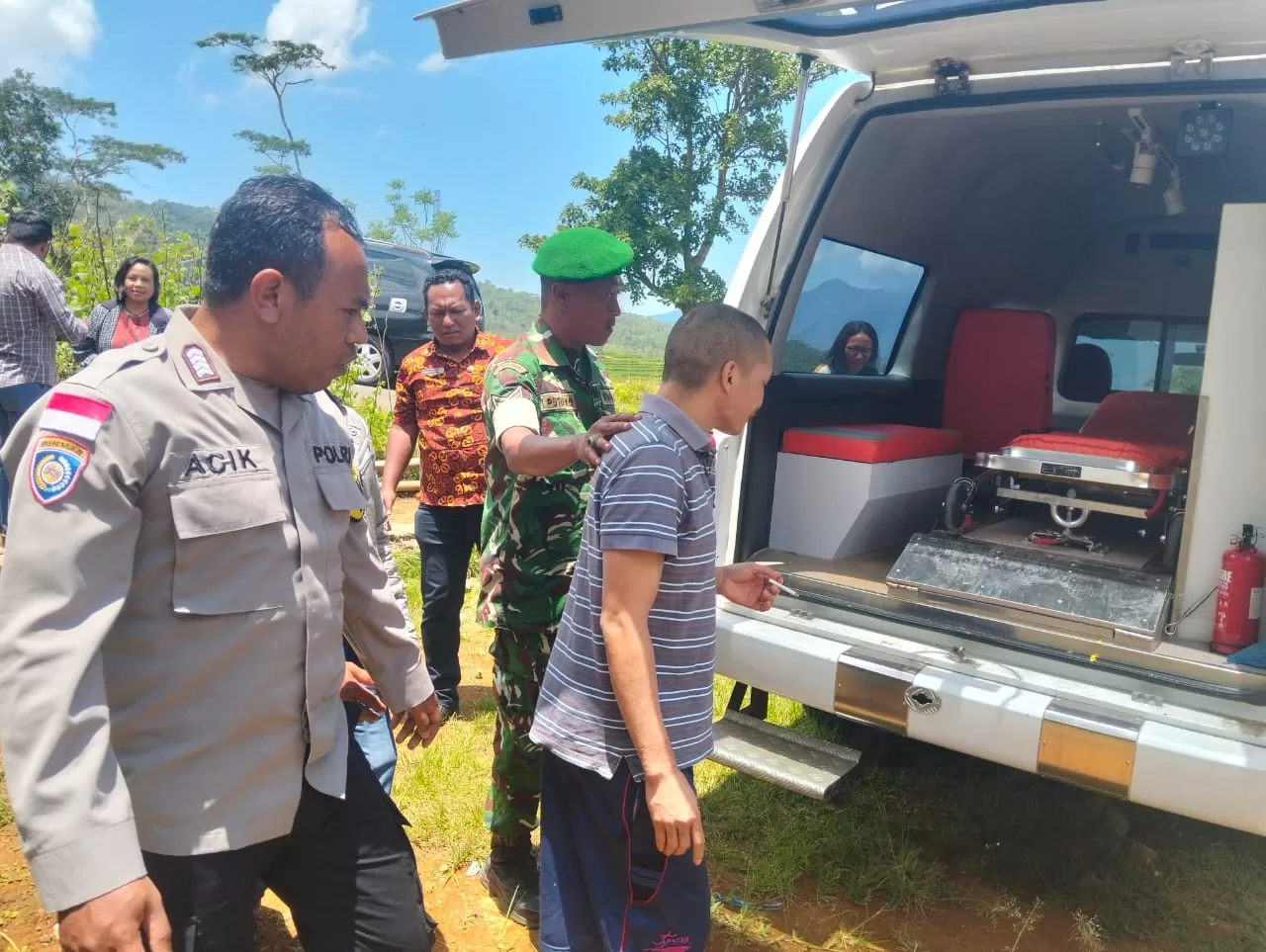 Babinsa Koramil 1612-01/Ruteng, Serma I Putu Eko Suwibawo, turut mendampingi proses rujukan seorang pasien dengan gangguan jiwa (ODGJ) dari Desa Bangka Lao, Kecamatan Ruteng, menuju Klinik Renceng Mose, Jumat (3/10).