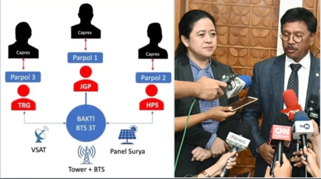 Jakarta, infopertama.com – Pihak kejaksaan menyebutkan bahwa ada kemungkinan kasus korupsi BTS 4G Kominfo yang telah mentersangkakan Menkominfo, Johnny G Plate akan bertambah. Terkait dengan pihak yang terlibat dalam kasus korupsi ini, skema korupsi BTS 4G Kominfo beredar di media sosial yang sebut nama suami Puan Maharani.