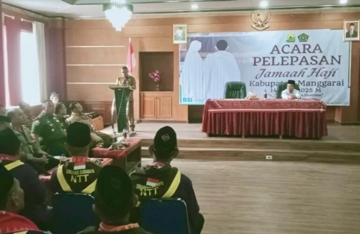 Ruteng, infopertama.com – Wakil Bupati Manggarai Fabianus Abu melepas keberangkatan calon jamaah haji asal kabupaten Manggarai yang akan menunaikan ibadah haji ke tanah suci Makkah, bertempat di aula Ranaka kantor Bupati Manggarai, Selasa 20 Mei 2025.
